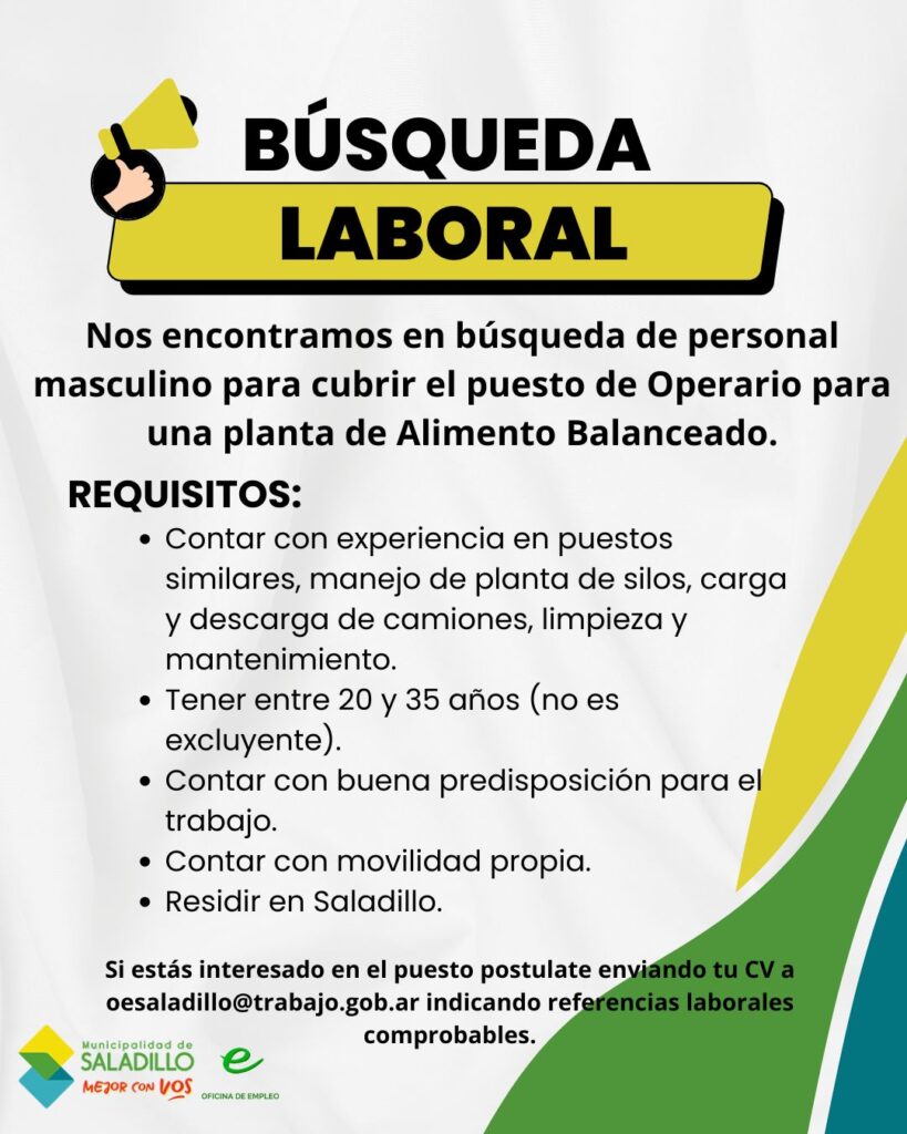 Desde la Secretaría de Desarrollo Local se dieron a conocer varias oportunidades de trabajo en nuestro medio.
