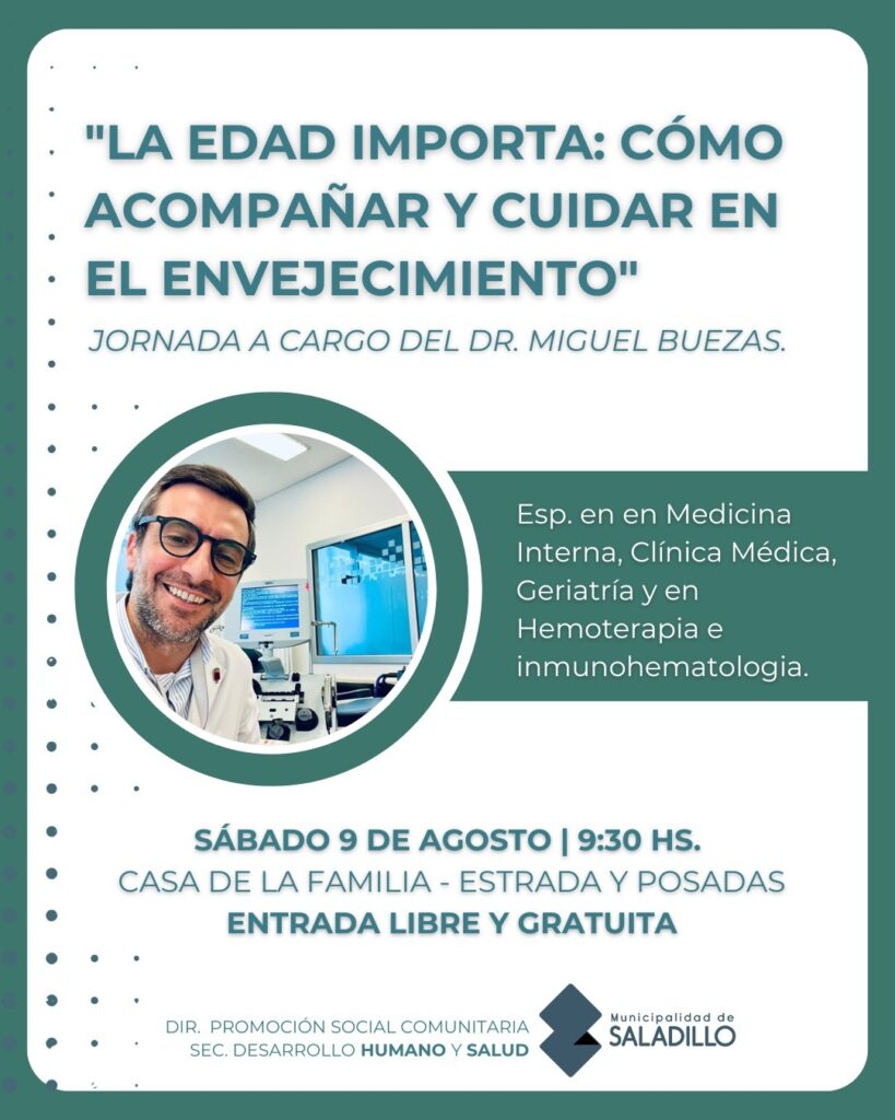 La Secretaría de Desarrollo Humano y Salud invita a una charla imperdible para quienes acompañan, cuidan o trabajan con personas adultas mayores en Saladillo.