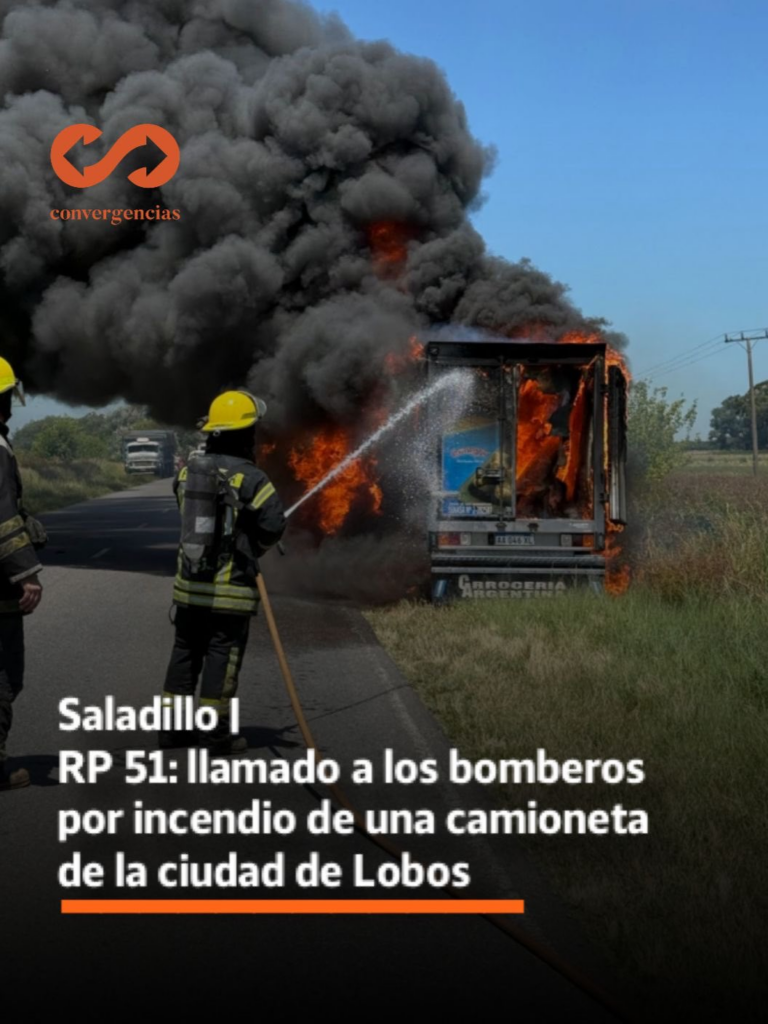 En la tarde de este miércoles 3 de diciembre, Bomberos Voluntarios de Saladillo fueron convocados para sofocar el incendio de una camioneta en la Ruta Provincial 51, en el trayecto 25 de Mayo – Saladillo. Se trata de una camioneta con una caja térmica, vacía, radicada en la ciudad de Lobos.